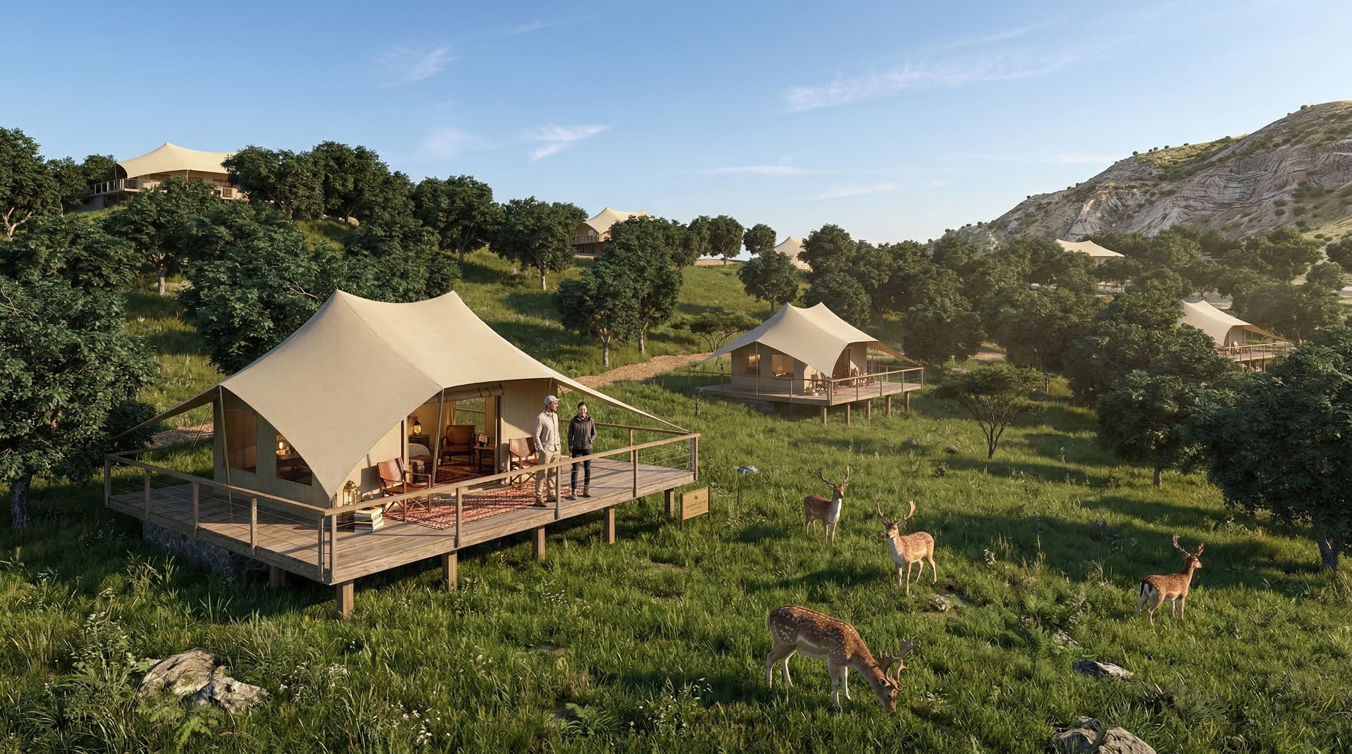 In collaboration with international partners, EuMo developed robust, permanent tented structures capable of meeting structural, climatic and operational demands. These structures balanced the visual lightness associated with safari architecture with the durability required for long-term use.