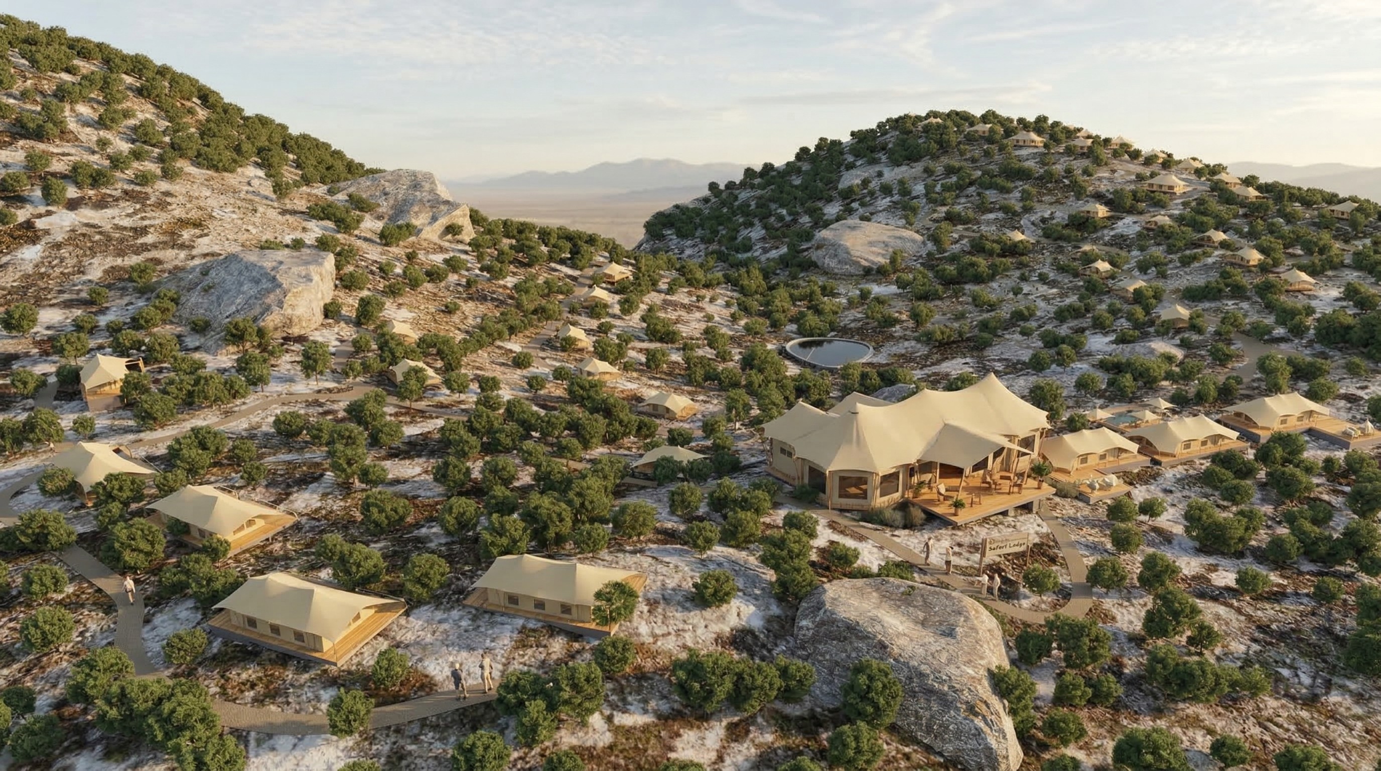 EuMo partnered with Centenary City Developers FZE to design The Range Chalets, a one-of-a-kind luxury safari resort envisioned within a private, man-made game park near Abuja, Nigeria. The project was conceived as a permanent, high-comfort hospitality destination offering an immersive wildlife experience tailored to well travelled expatriates and high net worth families.
