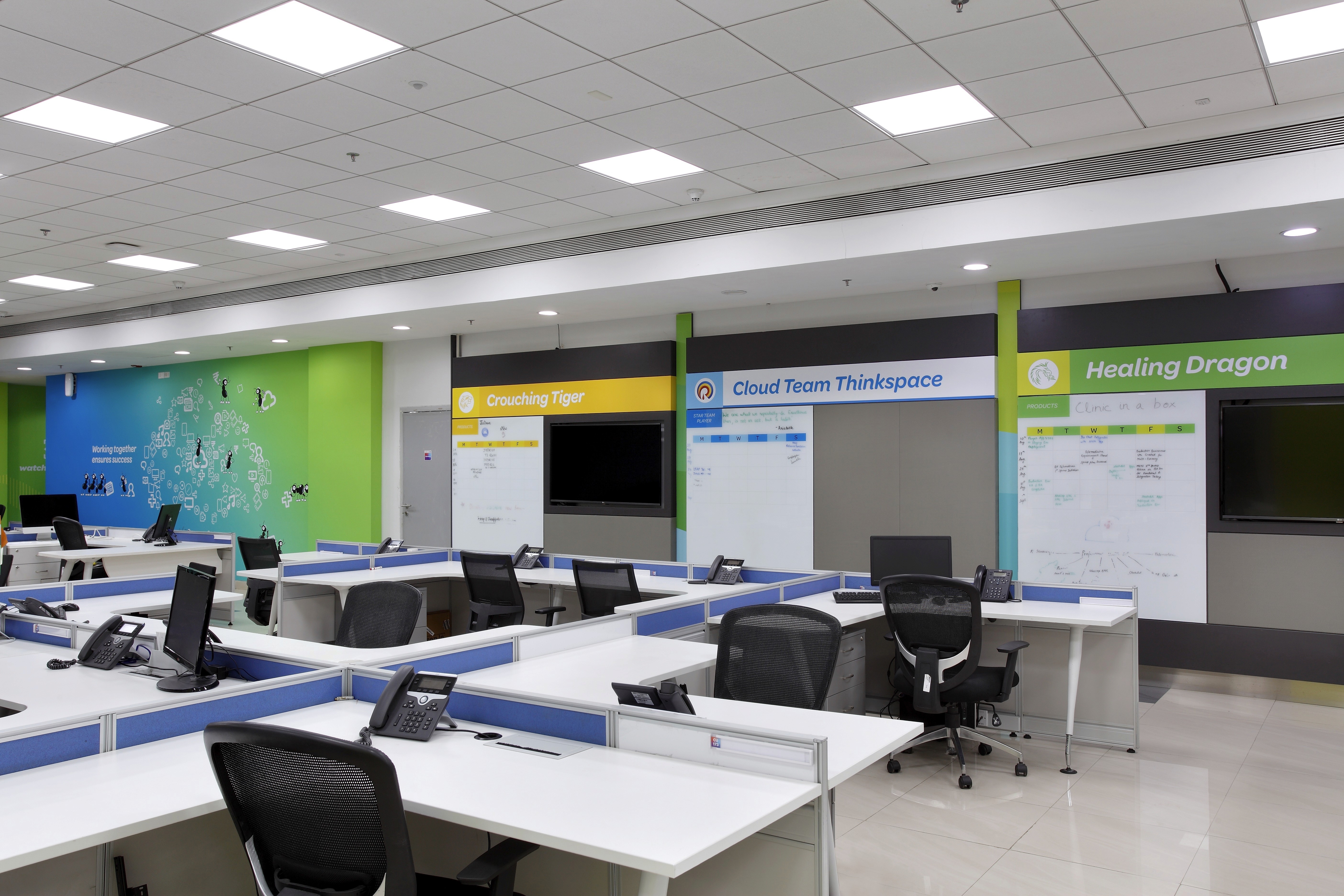 By embedding brand strategy into functional environments, the workspaces became active contributors to performance. The design helped: