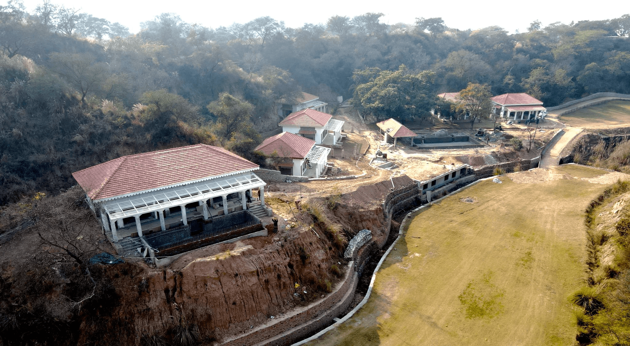 EuMo designed the WWICS Golf Academy Cottages as a low-density hospitality retreat set within the expansive greens of Forest Hills Resort, Mohali near Chandigarh. Located at the edge of the Sukhna Wildlife Sanctuary the project was conceived as a calm, nature-led living environment where cottages, landscape and shared amenities coexist without visual dominance.