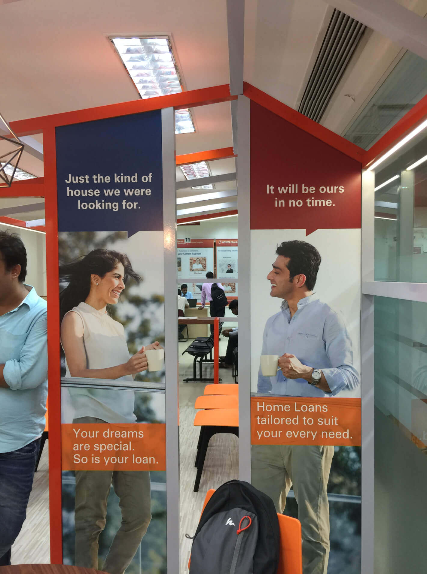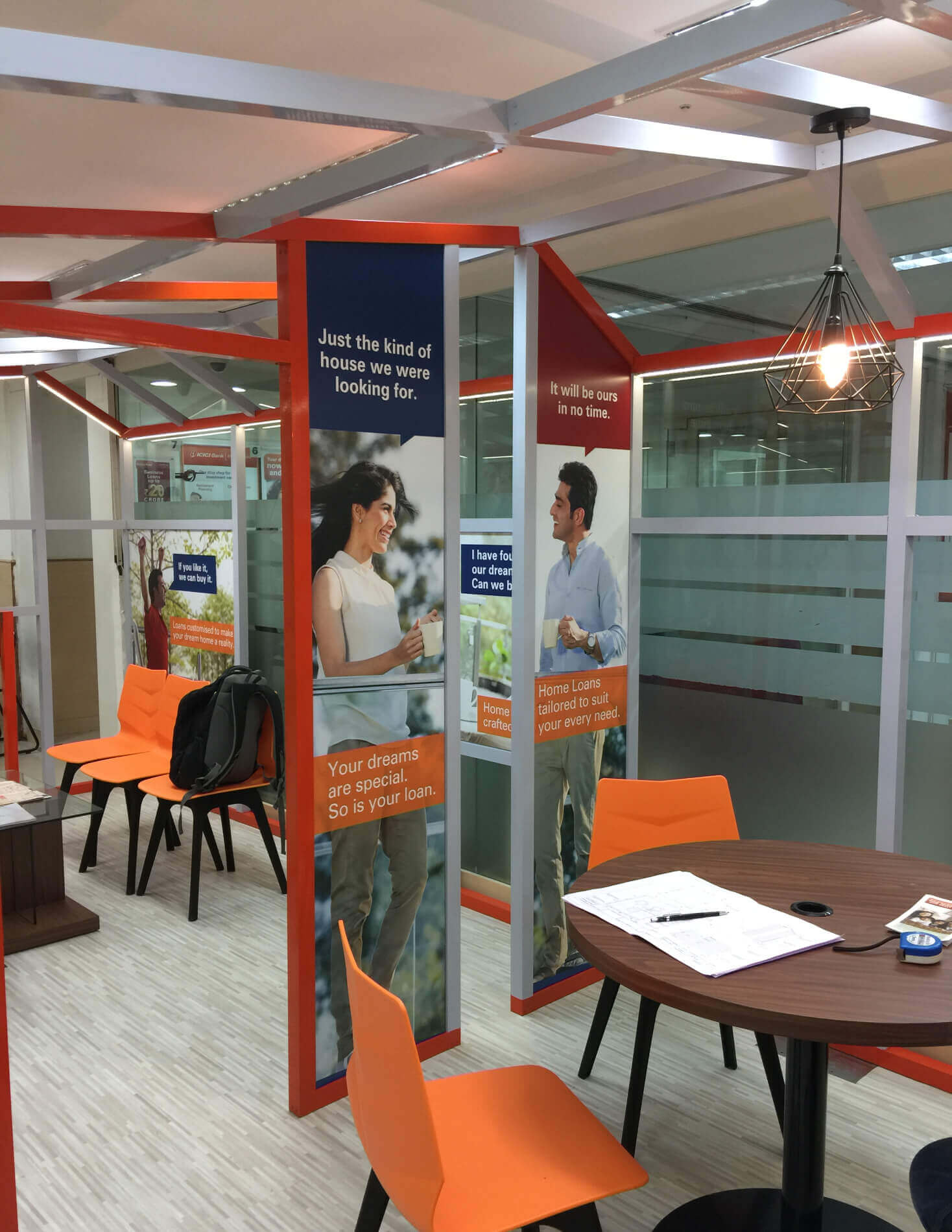The research and customer study indicated that the home loan audience who visit the branch requires privacy and time with the advisor to understand the process of disbursement. Also with home loans as a growing business, we could afford to demarcate the business with visual cues.