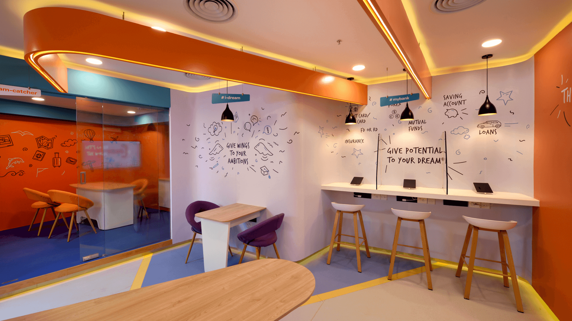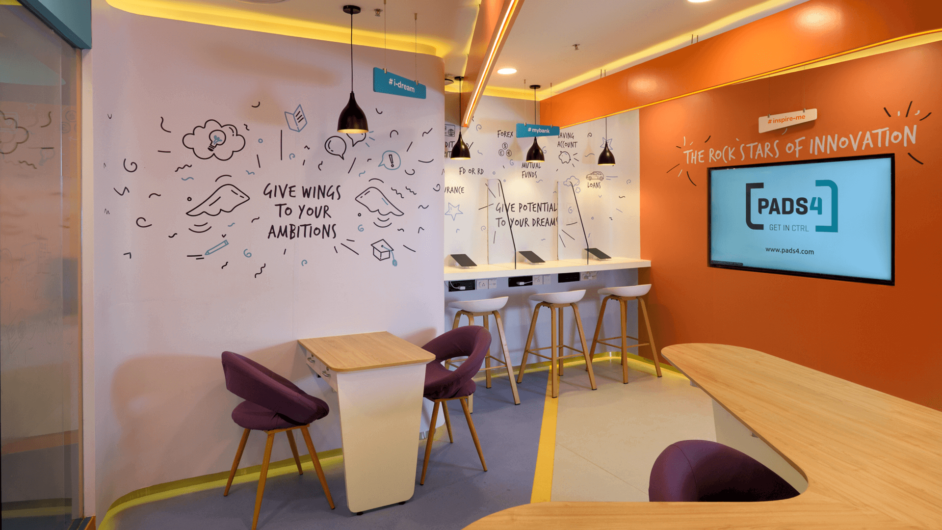 Our solution seeks to connect emotively with an audience that is full of ideals, wonder, curiosity and even confusion. A target segment that enjoys both physical and digital experiences that allow them to discover and express themselves. The central concept is the potential of every young adult to be a star in their own right, to be guided by the spark that ignites their superpowers. This star is shaped into a centrepiece around which the young audience can hangout, socialise and share ideas. The graphic style speaks directly to the audience. With the convenience of embedded screens, a performance stage and a coffee dispensing machine, a sense of casual comfort is communicated which allows the customer to make decisions in a stress free and vibrant environment. ICICI Bank delivered on their promise of a stress-free banking experience for millennials, by customising a host of flexible products including a zero-balance savings account and easy insurance coverage for the experience-seeking millennial customer.