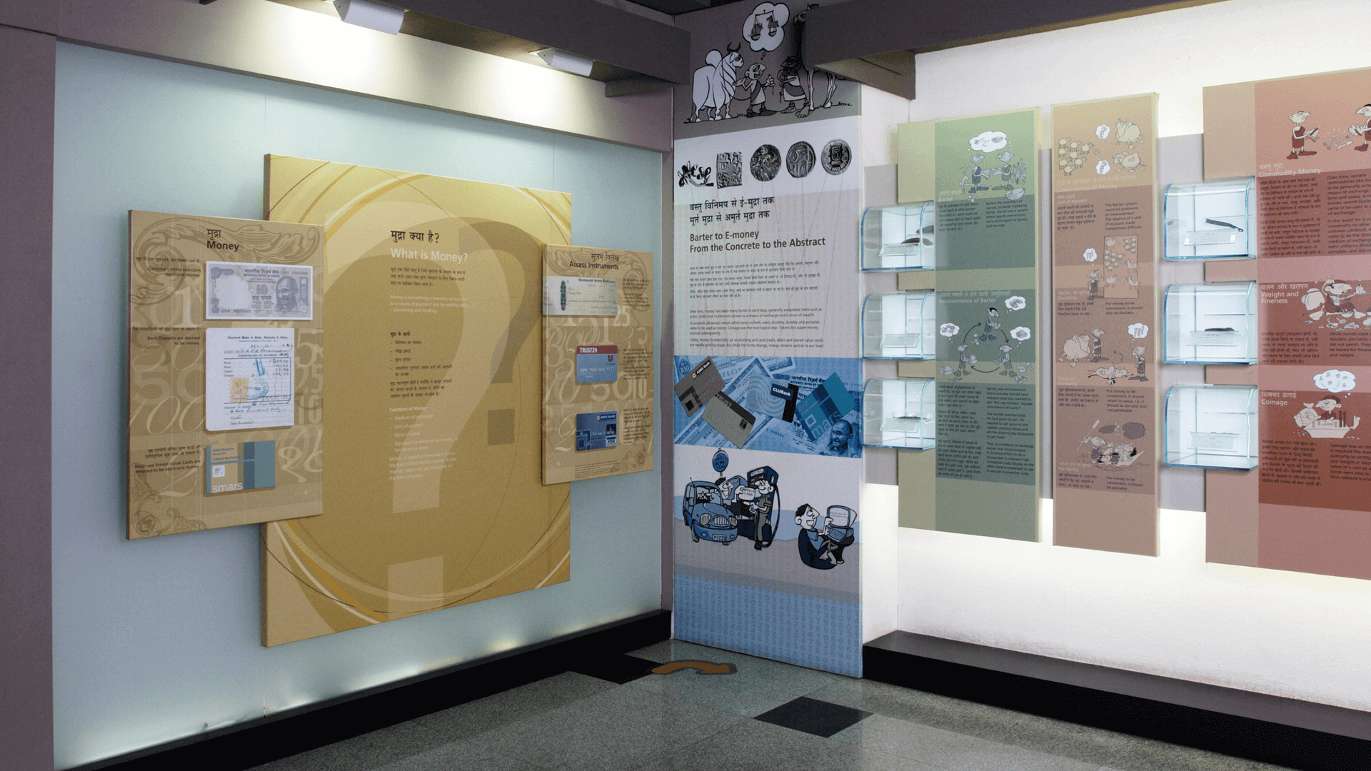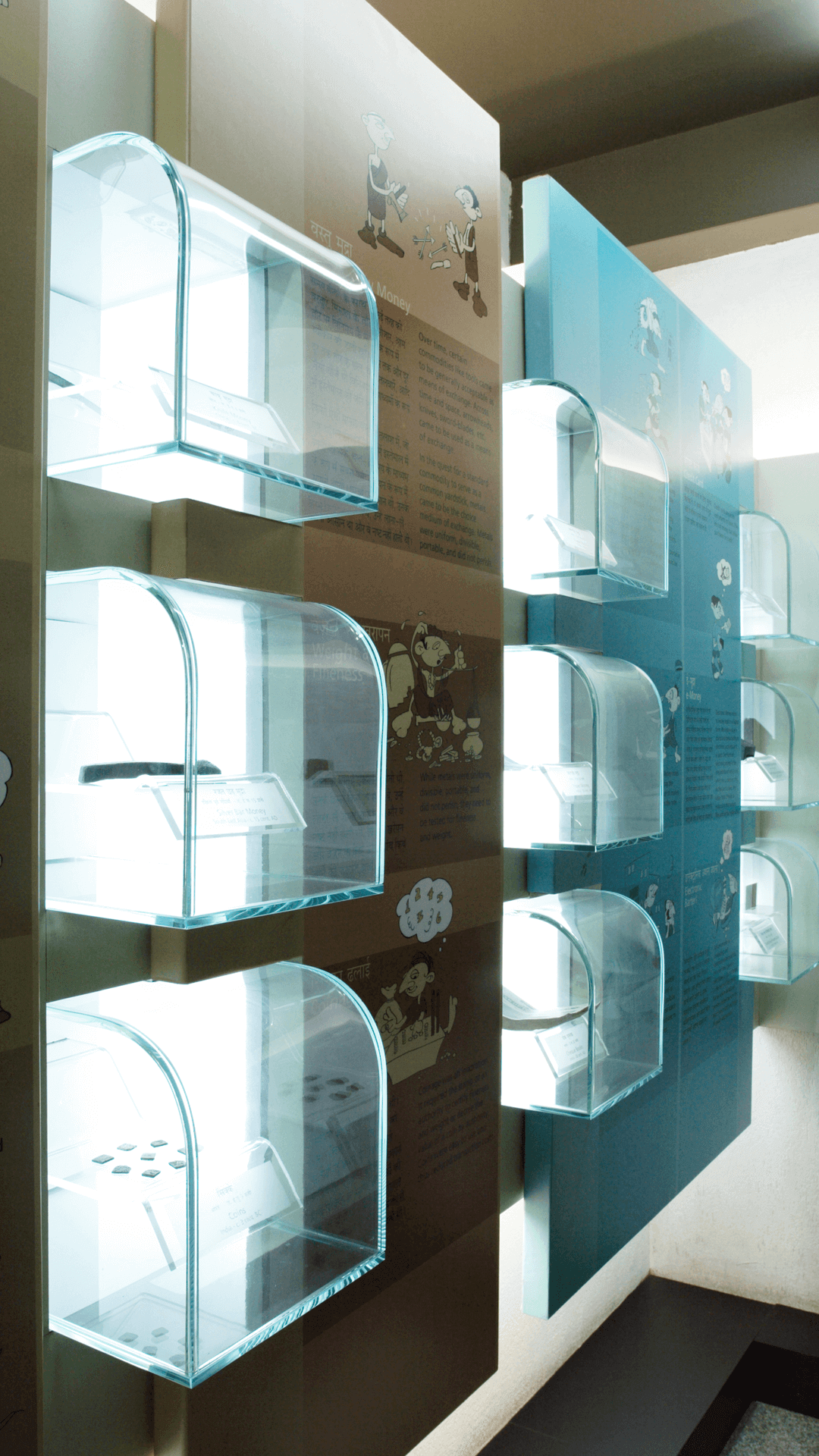 The RBI Monetary Museum experience is a walk through the evolution of money, spanning an expanse of many millennia and communicating to an audience across age and interest groups. We eliminated conventional panels, integrating artefacts with graphics, caricatures and pencil renders, providing a kaleidoscopic view of money and how it continues to evolve to accommodate advancing technology and trends.